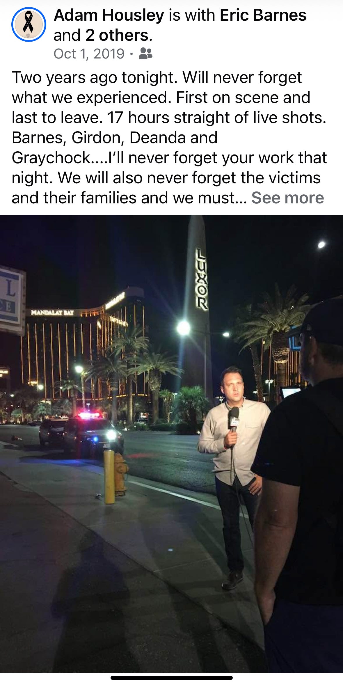 Today, Facebook reminded me of a post from my brother Adam. It was him covering the Route 91 shooting in Las Vegas on October 1, 2017. Who could have imagined that just one year later, his niece—my daughter—would be one of the victims of Borderline?